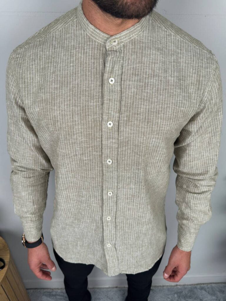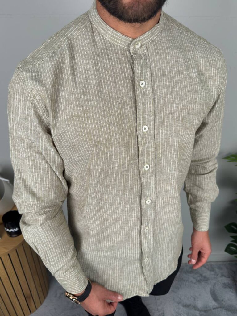 Muška lanena košulja maslinasta K5252-08