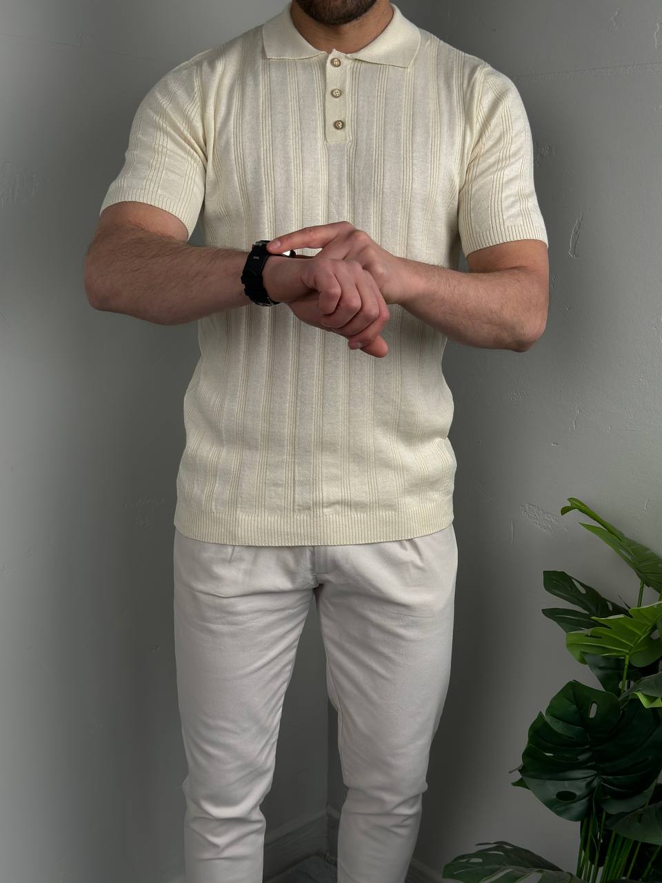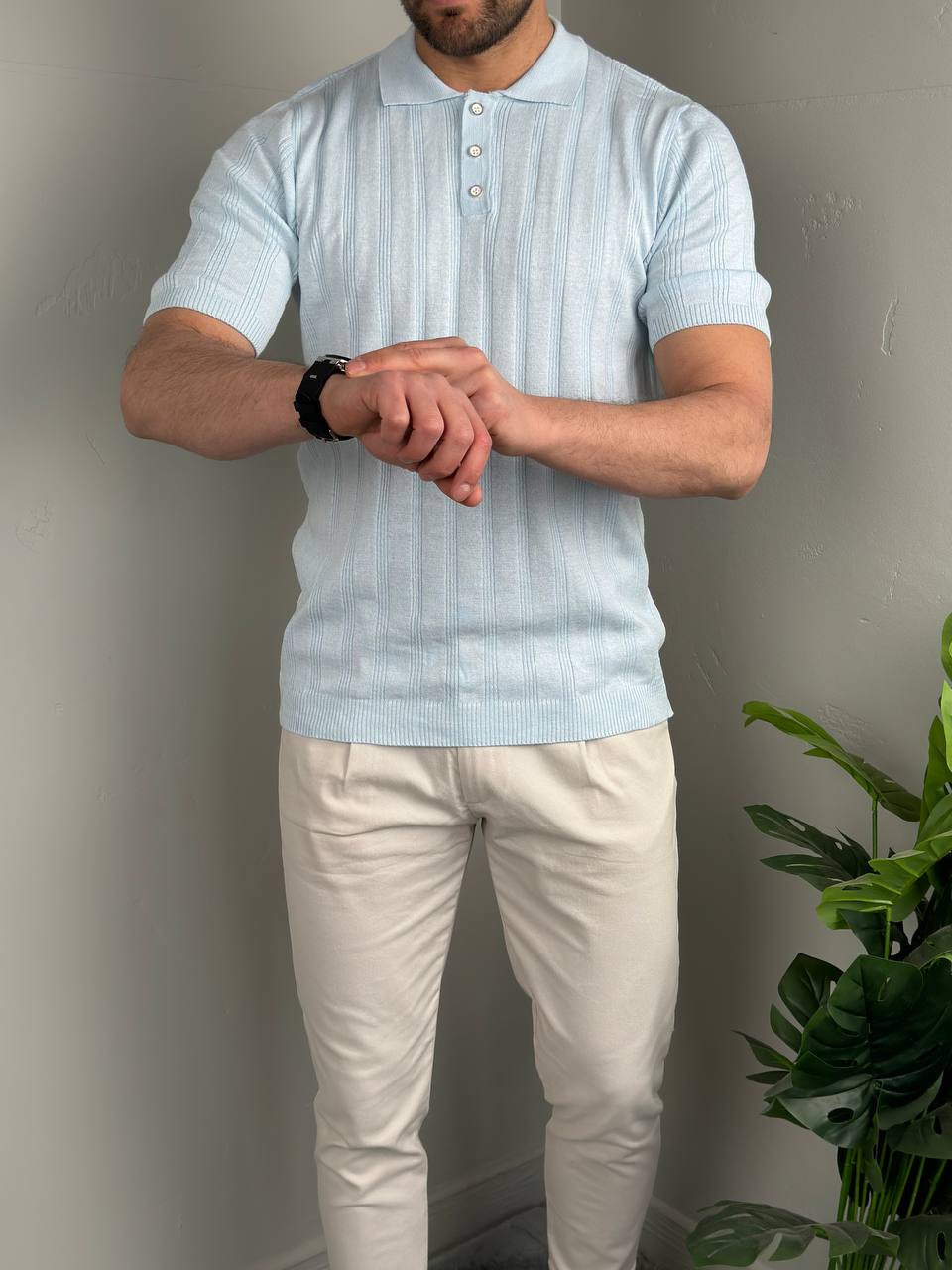 Pletena polo majica regular fit kroja. Kragna sa kopčanjem dugmićima sa prednje strane, kratki rukavi i rebrasti porubi.